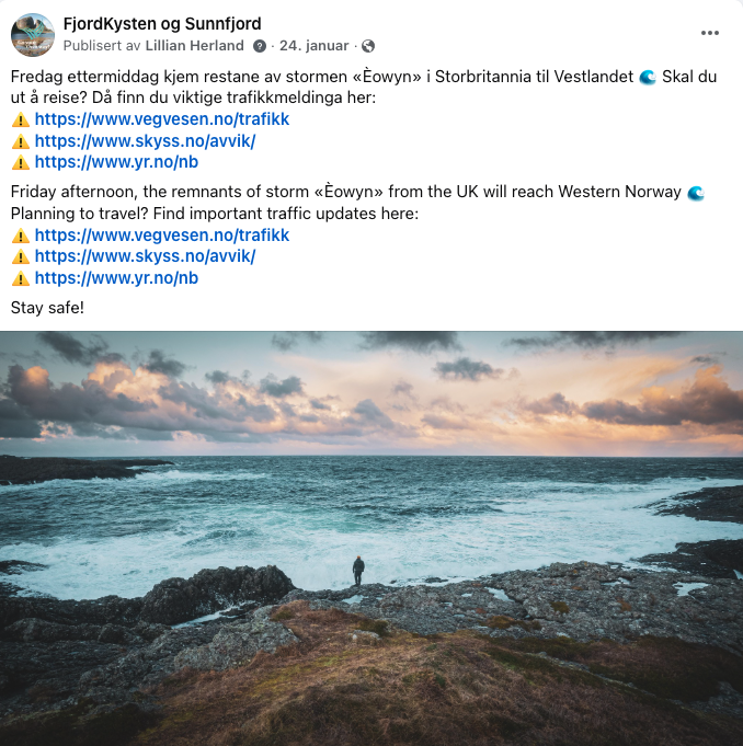 Ansvarleg marknadsføring handlar om å gi gjestane eit realistisk og påliteleg bilete av reisemålet, basert på deira behov og føresetnader. I all kommunikasjon om Visit FjordKysten og Sunnfjord skal vi formidle regionen slik ho faktisk er, i tråd med lovverk, anbefalingar og det gjestane kan forvente å oppleve.