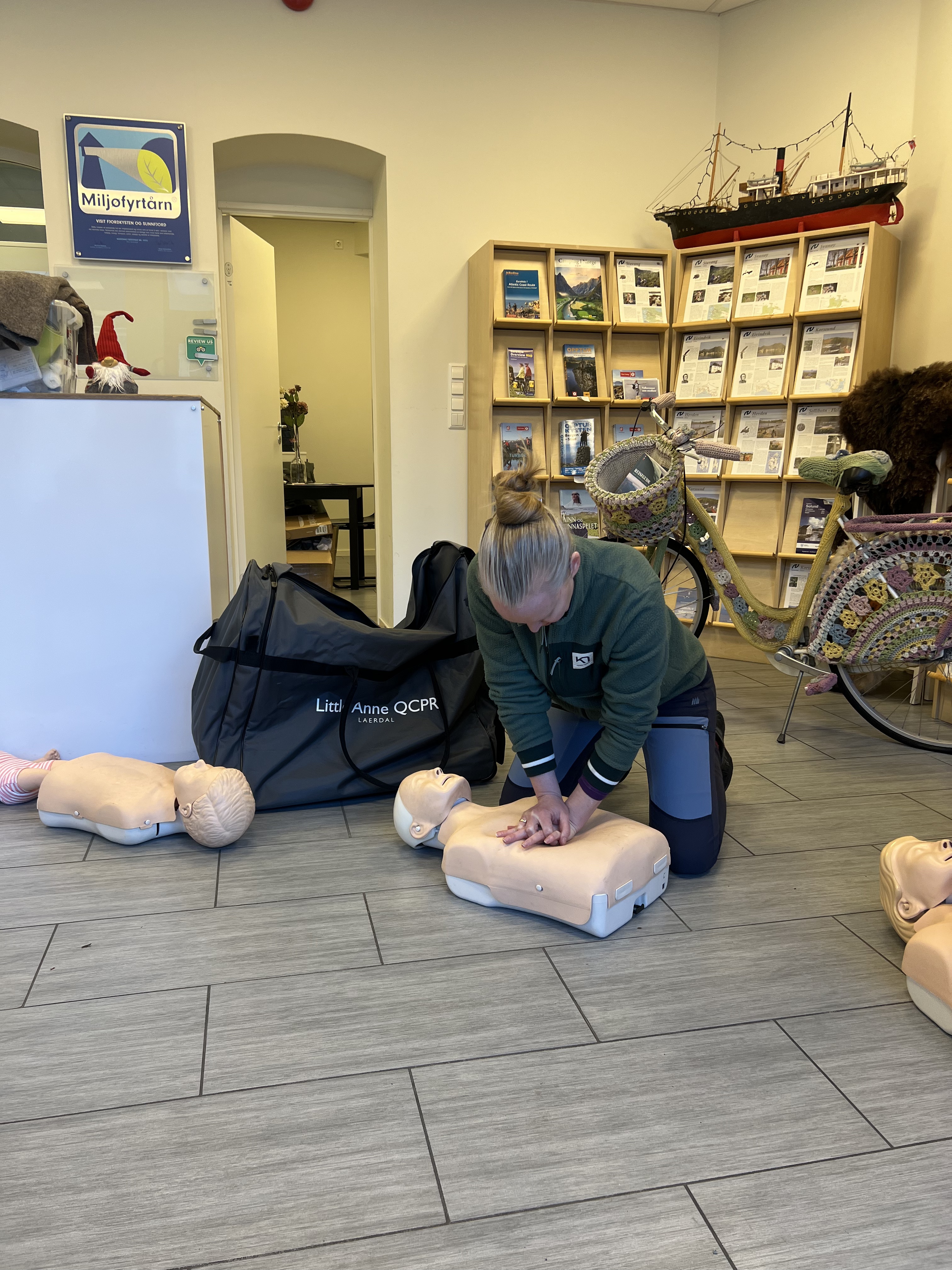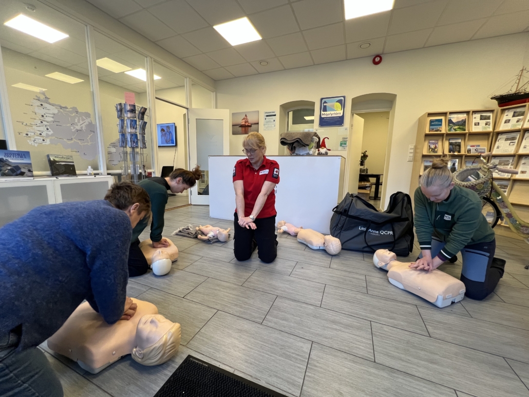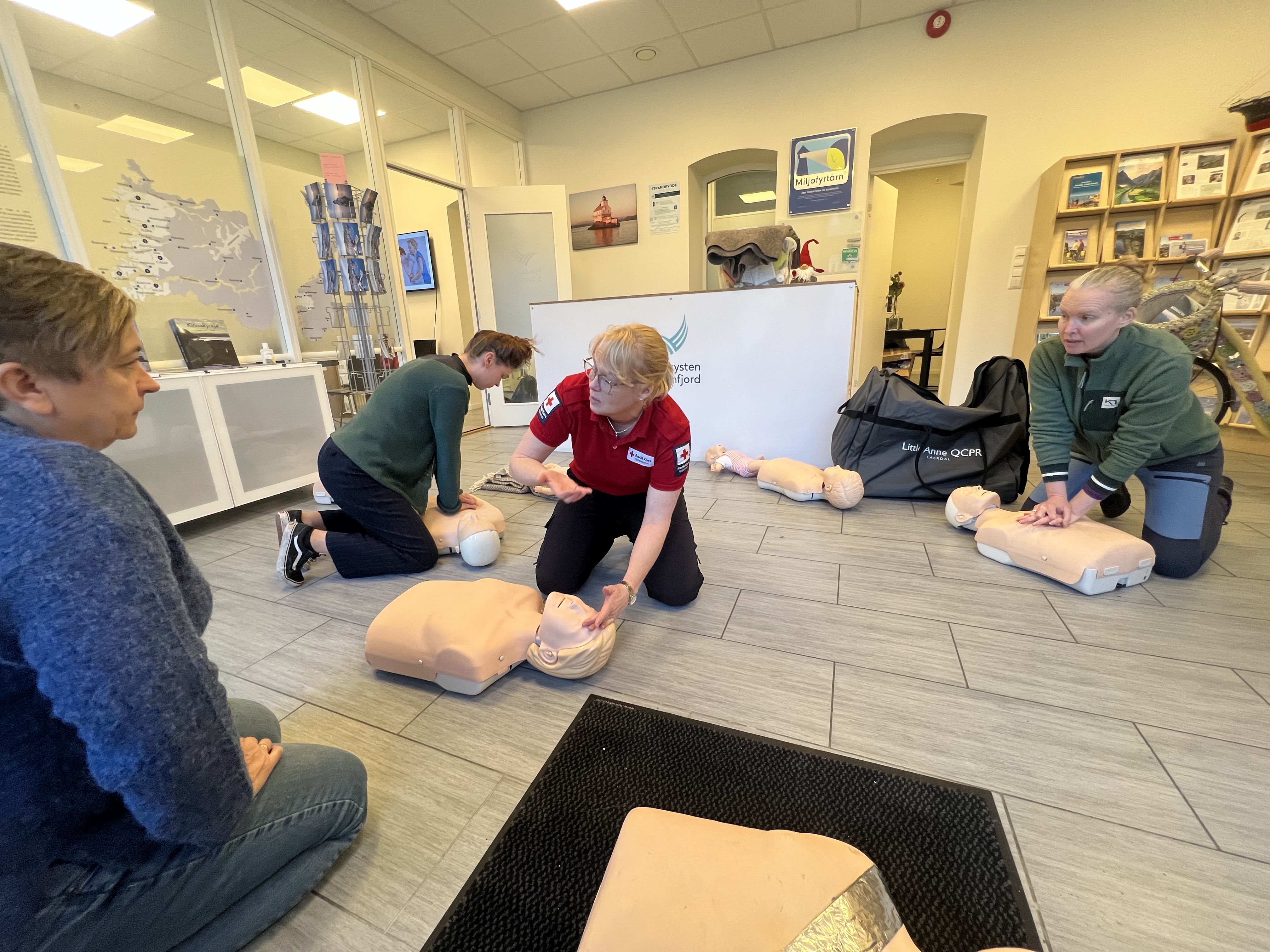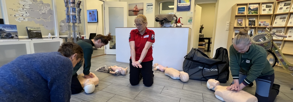 Måndag 1. desember fekk Visit FjordKysten og Sunnfjord saman med tilsette hos Måløyraidsenteret innføring i dei viktigaste stega innan førstehjelp. Kurset vart gjennomført av Røde Kors Florø.